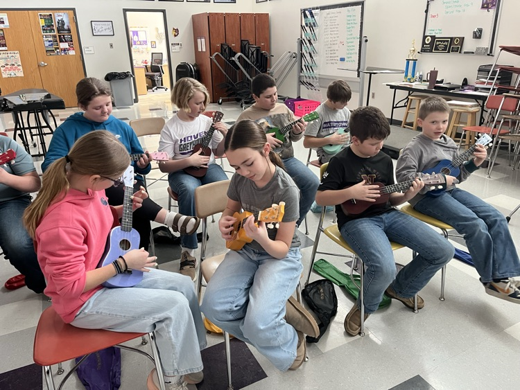 The 5th and 6th grade music class is studying the ukulele this semester. They will be premiering their uke skills this spring at the elementary spring concert!