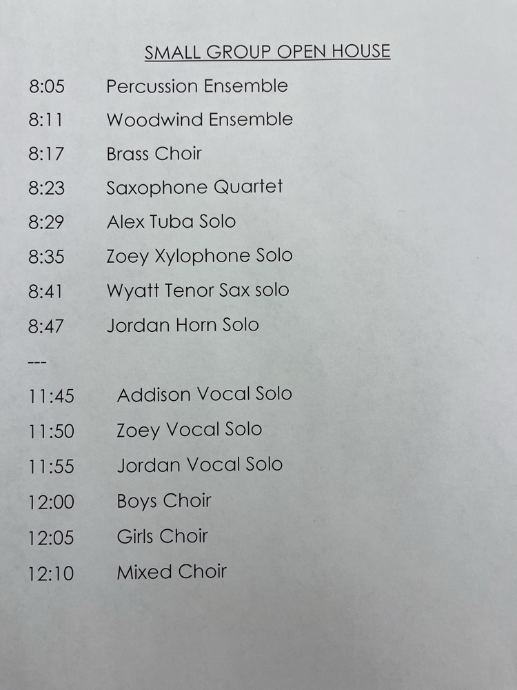 Join us this Monday, February 9th in the music room, for our Small Group Contest Open House. This is a great opportunity to hear the students perform before they head to contest on Feb. 18th.
